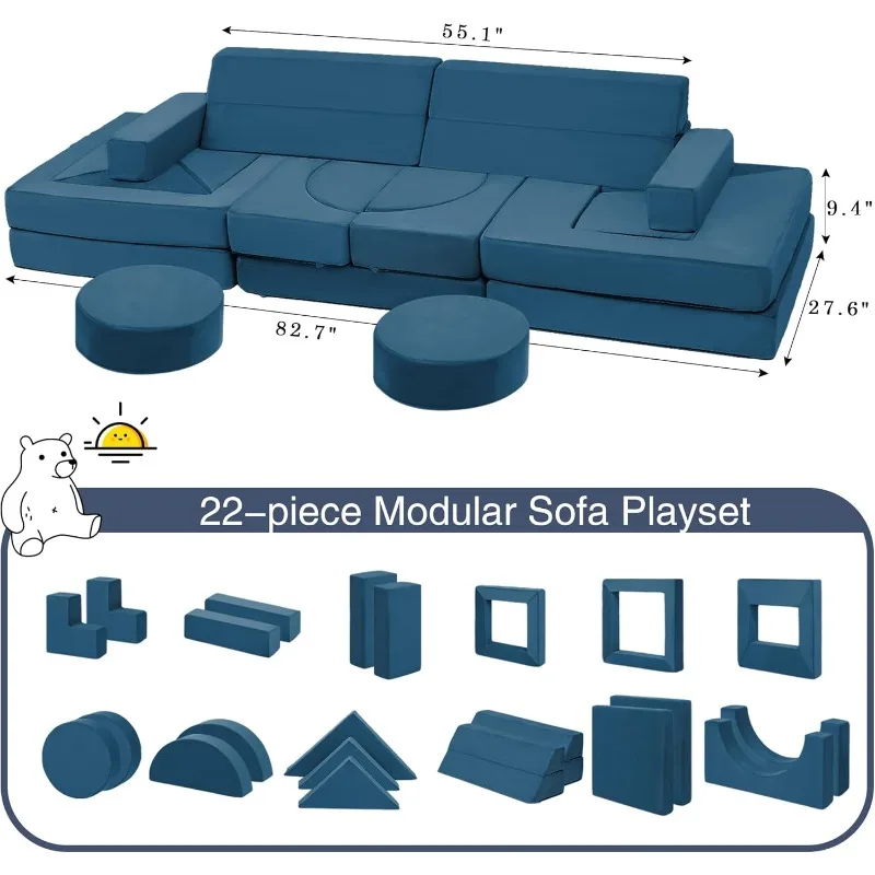 - 22pcs Modular Design : The modular sofa has 22 pieces: Big Square block*2, Semicircle block*2, Semicircular concave block*2, Mouth shape*3, Big triangle*1, Small triangle*2, L-shape block*2, Rectangle block*2, Circular block*2, Folding Trapezoidal block*2, and Elongated block*2. Create a variety of unique play structures, have a ton of fun putting this into different configurations
