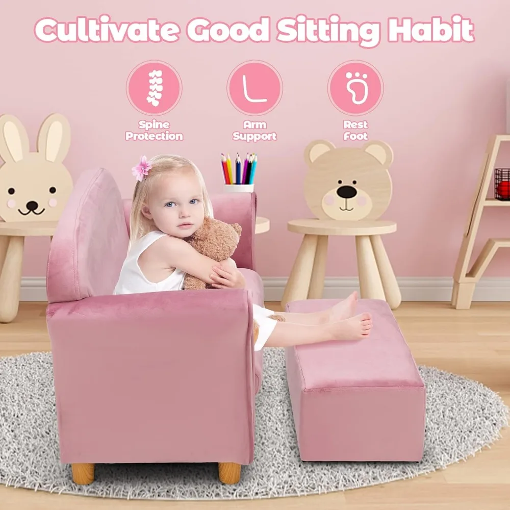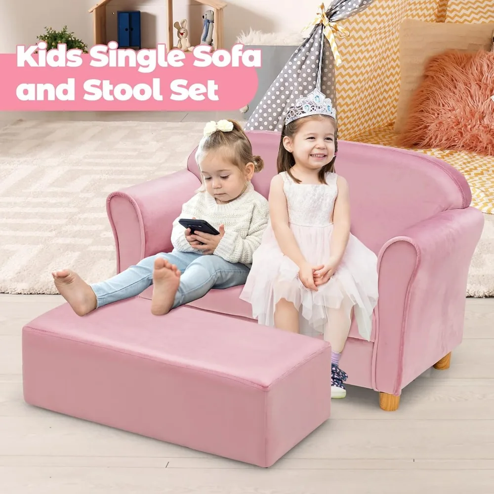 Kids Sofa with Ottoman, 2 Seat Toddler Upholstered Couch, Children Armrest Chair Lounge for Nursery Kindergarten Kids Room